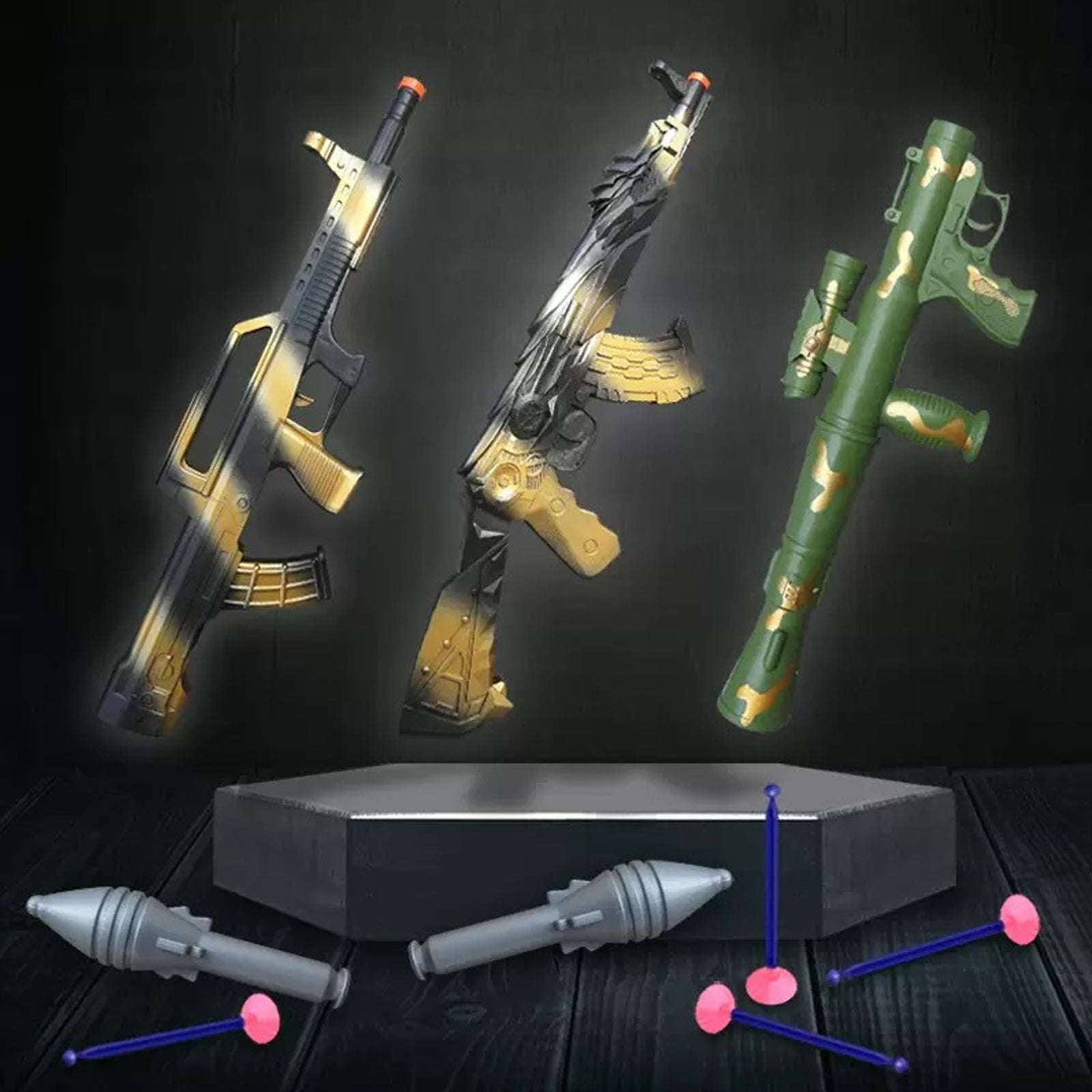 【Realistic Military Design】: This toy rocket launcher features a bold green-and-gold camo pattern, paired with a detailed scope and ergonomic grip—mirroring real military gear to spark kids’ imaginative play. Its lifelike shape (without sharp edges) makes it safe for role-playing as soldiers, commandos, or adventurers, adding authenticity to every pretend mission.