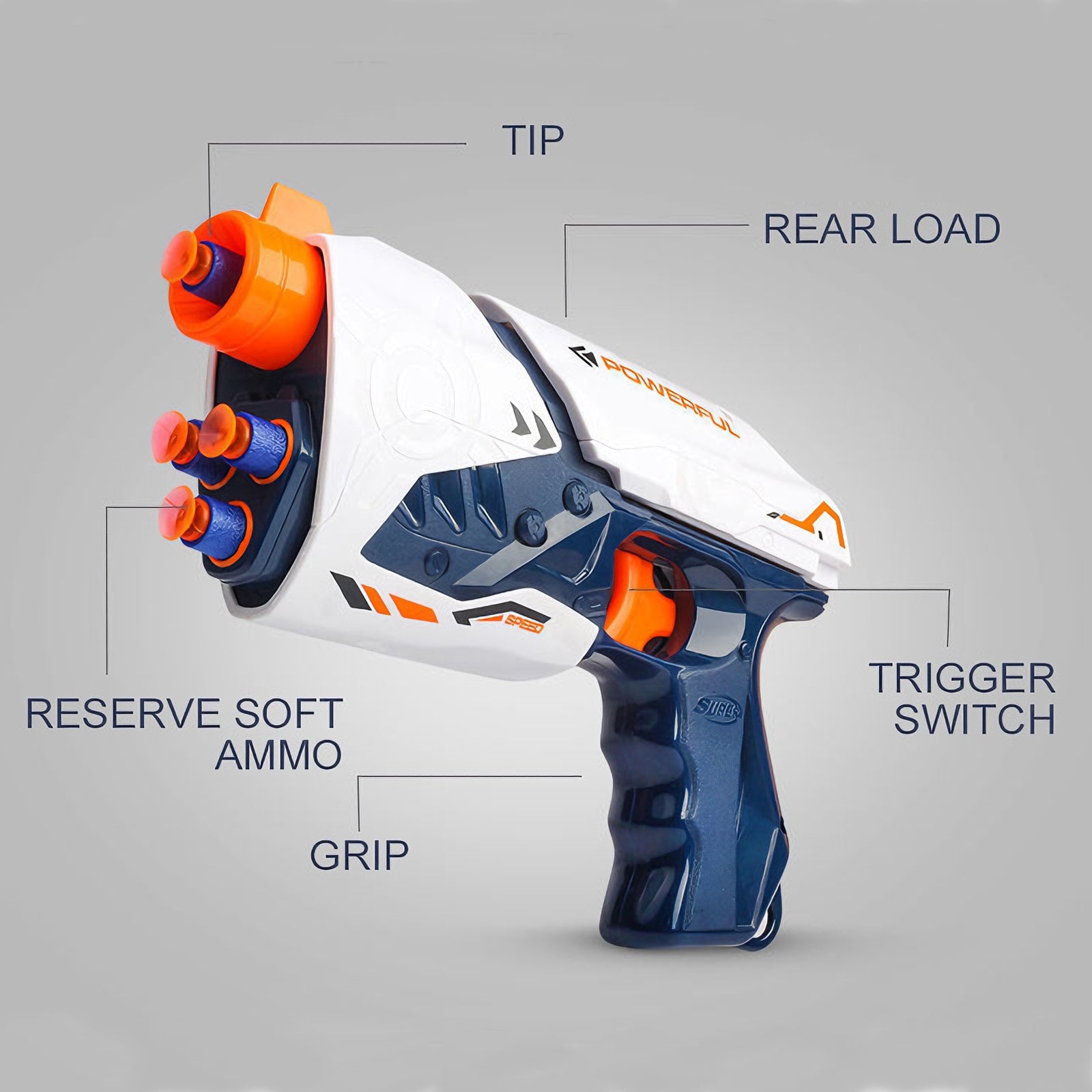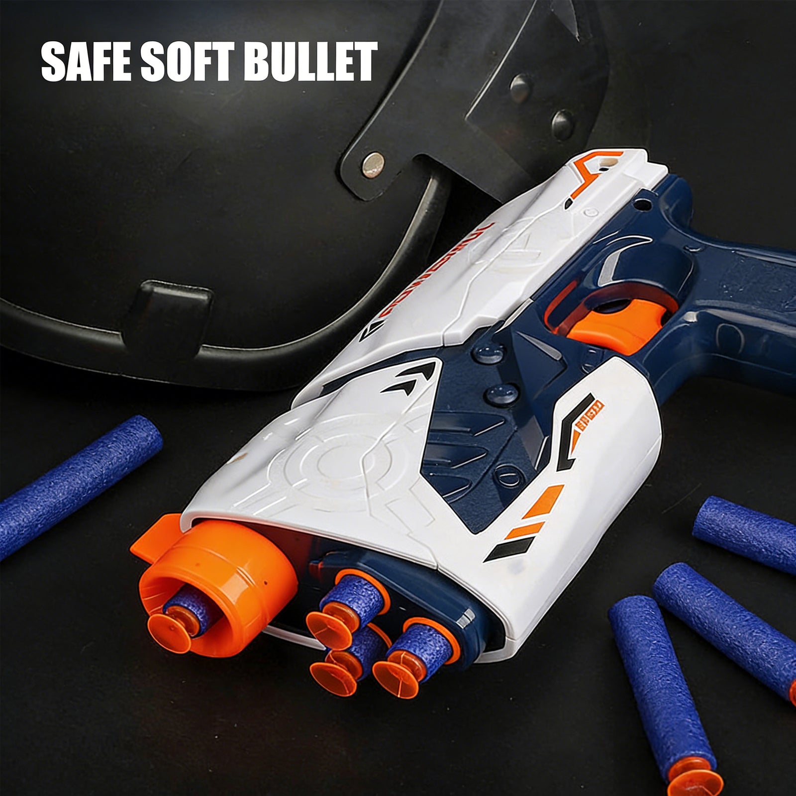 High-Powered Swift Toy Soft Bullet Blaster – Sleek White-Orange-Navy Design, Safe Foam Darts for Kids’ Outdoor Fun & Active Play,Parent-child Outdoor Battle Toy Manual Soft Bullet Gun