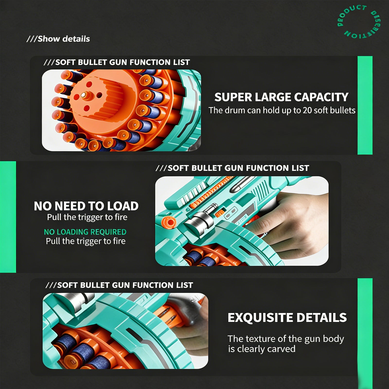 Massive rotating magazine holds tons of darts—no constant reloading! Keep rapid-fire action going nonstop for epic backyard battles or indoor skirmishes that last way longer.